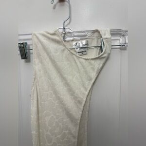 Elevate your fashion game with this stunning Silk Roads By Adriana Iglesias Wendi Terry Maxi Dress in White Bridal Cutout M. The dress features an animal print pattern, a crew neck, and a sleeveless design with a pullover closure. Perfect for party, cocktail, or formal occasions, this dress boasts a long maxi length and is made of high-quality terry fabric for ultimate comfort.