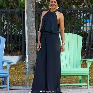 Silk & Salt Black Flowy Jumpsuit With Side Tie