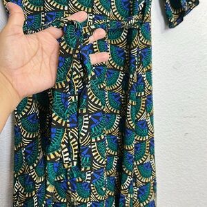 Silk & Salt Journey Maxi Wrap Dress Size Large Boho Print Green Blue Ruffle Hem