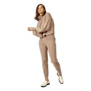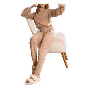 Silk & Salt Luxe Knit 2 Piece Lounge Set in Taupe Brown Heavyweight Knit. Your loungewear collection will be complete with this set. It comes with a cropped, puff long sleeve turtleneck and matching sweatpants for an effortlessly chic statement from head to toe. The fabric is soft, heavyweight, and breathable. Perfect Travel outfit!!