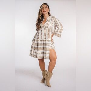 Silk & Salt Women Tunic Geometric Printed dress 3/4 Sleeves Size Medium EUC
