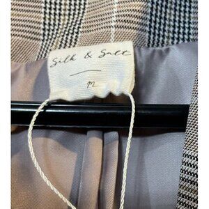 Silk & Salt Womens Medium Single Button Blazer Tan Plaid NEW Career Preppy