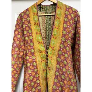 Silk Sari and Kantha Jacket High Low Hem Reversible Global Boho Patchwork Large
