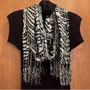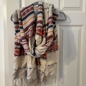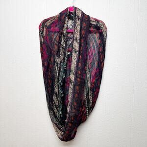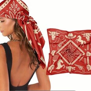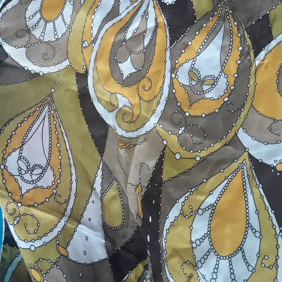 Vintage Scarf 100% silk bold bright wild colorful print All silk scarf Rectangle Shaped Long pretty swirls corcles almost paisley print.