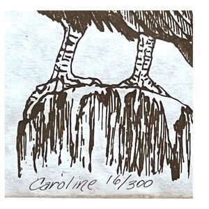 This beautiful piece of art is a unique creation by Caroline Zaffery. It is a silk screening of a pelican on matte paper using ink. The print is signed by the artist and comes in a framed size of 14 inches by 16 inches. The style is a still life etching and the theme is a pelican.