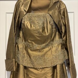 Beautiful beaded lace embellished gown. Size 16 strapless with straps provided if preferred. Lovely over blouse styling, with built-in bra, perfect for a special wedding.