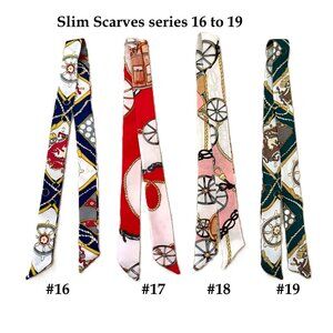 Silk Slim Scarf Red Carriage and Rope Print 35 x 1.5 Inches Equestrian Chic No17