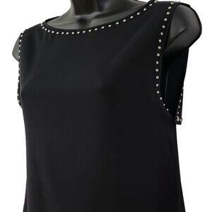 Women's Black drape camisole top, decorated with hand placed nickel studs, Superb Chic!