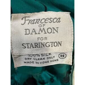 Silk Teal Green Drape Tie Floral Dress Vtg 80's Francesca Damon Starington Sz 8