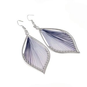 Silk Teardrop Woven Thread Statement Earrings Two Tone Blue and Silver NWT