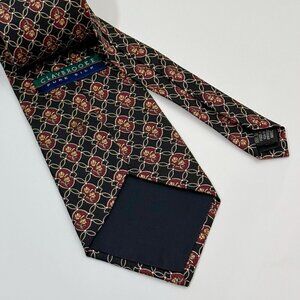 By Claybrooke. Floral geometric pattern on Black. 3.9" wide tie. 100% silk. Made in the USA. Excellent condition.
