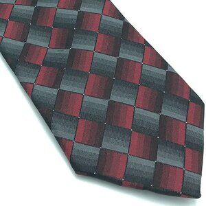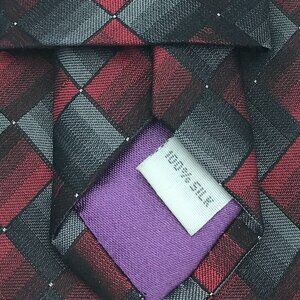 Burma Bibas men's tie. The tie is 100% silk and has grey colors and burgandy/dark red. It is in great condition. Total length measures 60 inches.