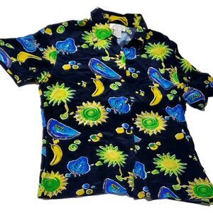Silk Tropical Print Silk Shirt L Short Sleeve Button Front Resort Vibe SoftGirl