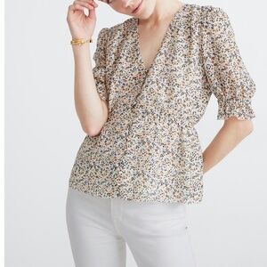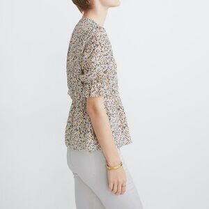 Silk V-Neck Peplum Popover Top in Fieldwalk Floral Sz Med