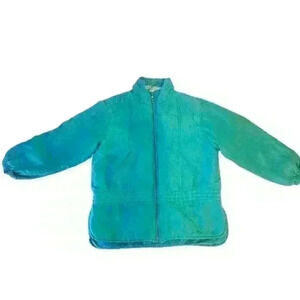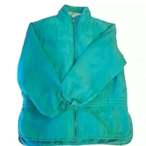 Vintage 80s to 90s Turquoise Silk Quilted Bomber Jacket M