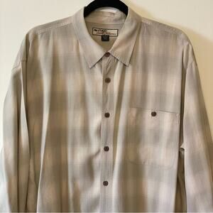 Silk Vintage Tommy Bahama XL long sleeve button down shirt plaid cream neutral