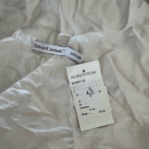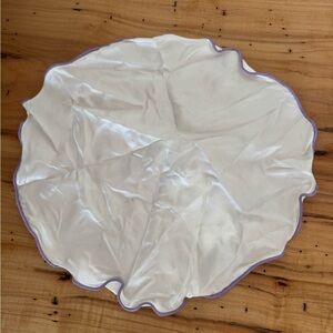 Elegant cream pocket square with a subtle purple trim. Perfect for adding a touch of sophistication. 100% silk pocket square