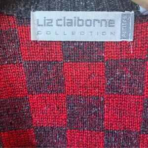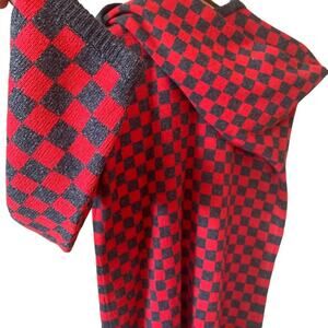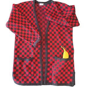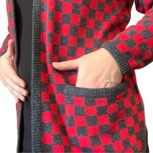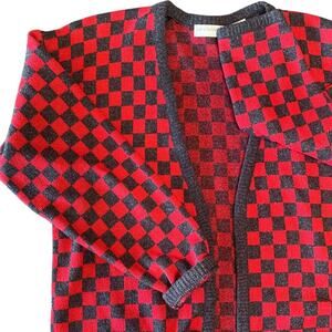 🪩Vintage 80's red & charcoal checkerboard cardigan. Open fit - no closure with pockets. Silk and lambswool blend knit.🪩