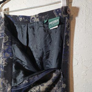 Silk Wool Geiger Collection Skirt Slit Blue Paisley Floral Maxi Design Sz 38