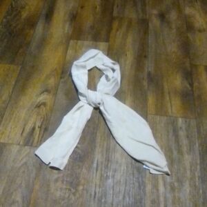 This elegant cream scarf is a versatile accessory for any wardrobe. Its soft texture adds a touch of sophistication to any outfit. professional business office wear neutral minimalist preowned