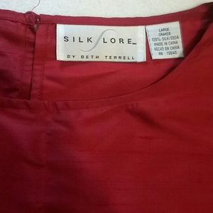 Garnet red, sleeveless, 100%silk top but Beth Terrell. In great condition.