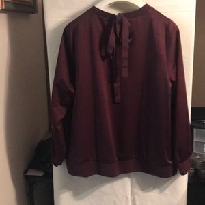 Silk blouse tie in the back. Lace in the front. Looks great with jeans.