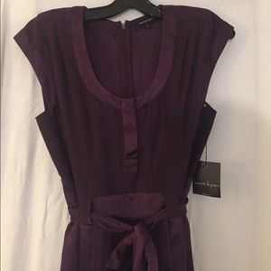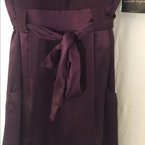 Silk matte and shine dress with tie at waist. Removable belt detail