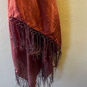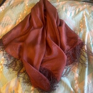 Burgundy 48" square fringed all around silk scarf