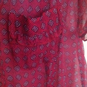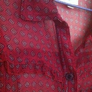 This blouse has little ruffles around the edge of sleeves and chest. Faux pocket. Really clean and like brand new.