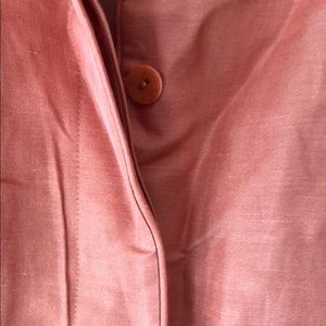 Beautiful linen and silk jacket. Pretty peach. Covered buttons. 3/4 sleeve