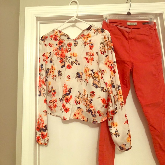 Floral slight crop Zara top- long sleeved size Small. Goes great with high-waisted jeans!