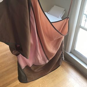 One shoulder silk top. Has grays browns and pink. Recently dry cleaned.