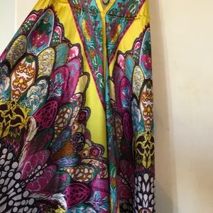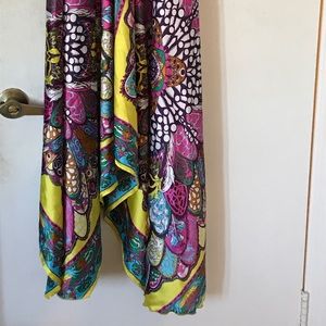 Perfect condition silk v-neck patterned dress. V-shaped back that you can tie tighter. It is labeled as one size however it would suit a medium size the best.