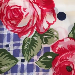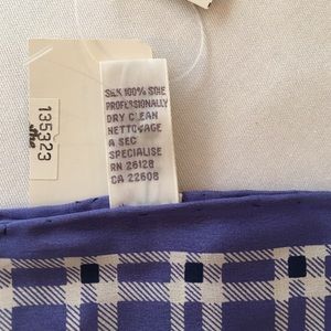 We call this our happy spring scarf. Covered in a rose and polka dot print that evokes spring. 34x34 inch square, 100% silk, dry clean only.