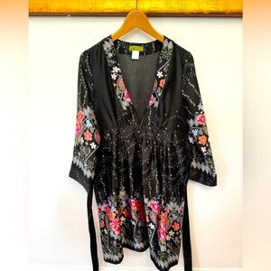 The fabric is silky soft satin and it’s in pristine condition. Can be worn with high heels for a sexy look, or even with sneakers or beautiful sandals for more casual look. For cocktail parties or the beach. Incredibly versatile because of the silky satin fabric and the design.