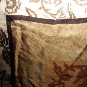 @sanctuary123 it's actually brown...theblightest part is a golden tan bordered by a chocolate brown. The center is sort of a light rust and the floral print is a deeper rust color. I'm sorry, I am a horrible picture taker but I'll try to another