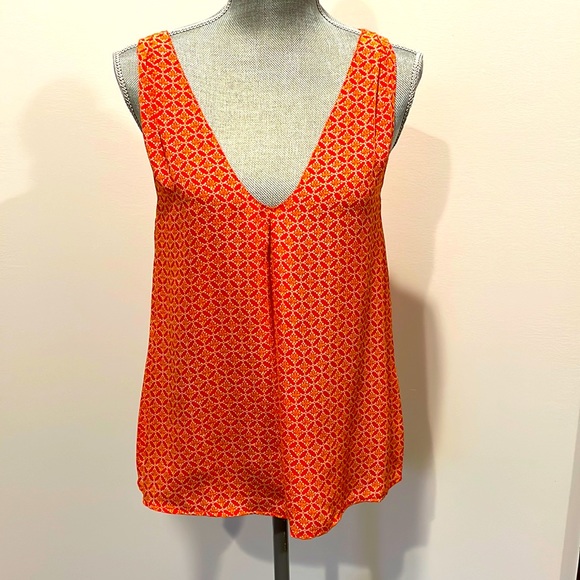 V-neck light and loose top. Approximately 23” long, 17-18” across the chest, 23” across the bottom.