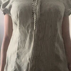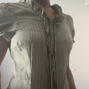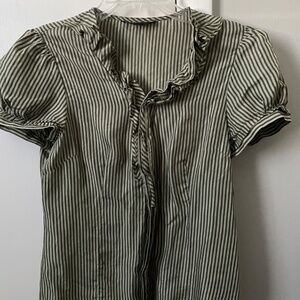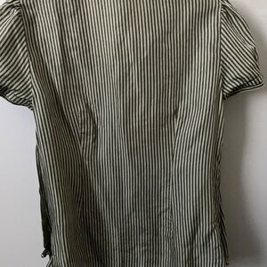 Comfortable cute blouse. Can be casual or dressy,100% silk. Fits like a small to me.