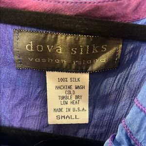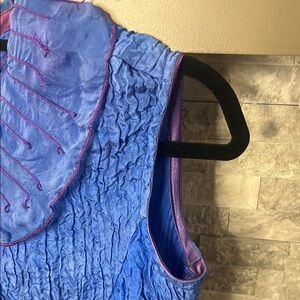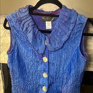 Silk size Small Blue and Purple Sleeveless Blouse with Ruffled Peter Pan Collar