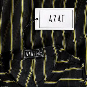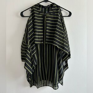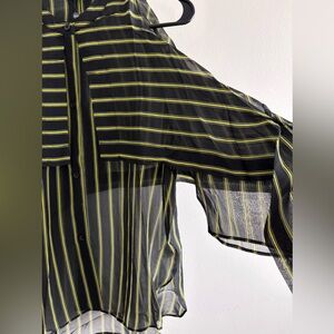 Silk striped slit shoulder blouse black yellow