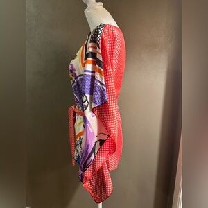 Cabi silk Butterfly kimono top, tie waist, floral front, polka dot back. Size S