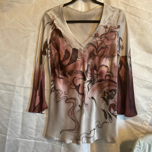PTP 20”, slim fit, length 29”, bell sleeve 21”, 100% silk, beautiful colors