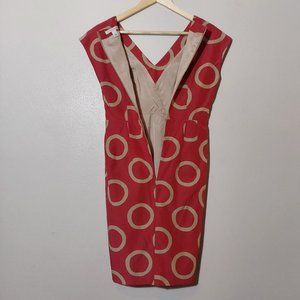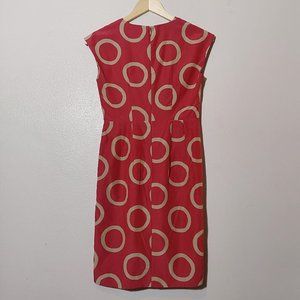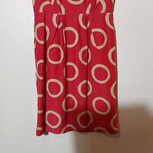 Silk-Blend Retro Style Red w Tan Circles Dress Banana Republic - Size 0 Women