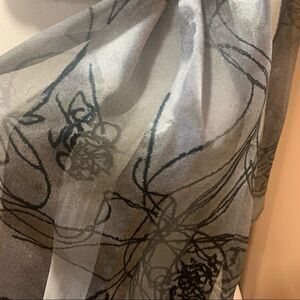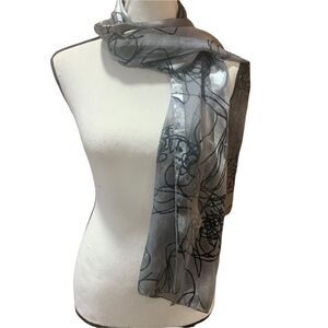 Scarf, w/ Gorgeous Silk-Feel, Versatile Basic Black/Silver/Grey Shades in Abstract Pattern