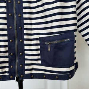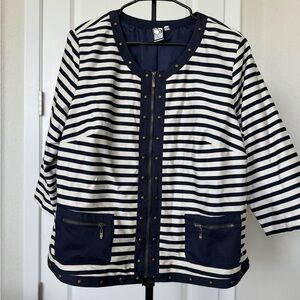 SilkLand Woman’s Stripped Jacket with Gold Studs - 1X