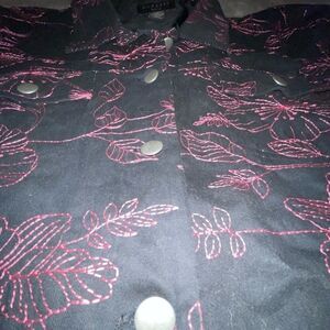 SilkLandāBlackā&Ā PinkāEmbroideredāButtonāUpāJacket