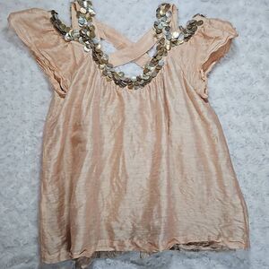 Light Pink Silk Linen Blend Top With Metal Accents Intercud Size Small