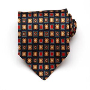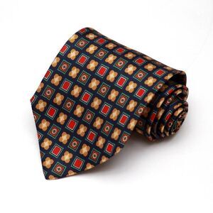 Silk Necktie Danfuss Tie Red Brown Ornament Print 100%Silk Tie Made in Italy