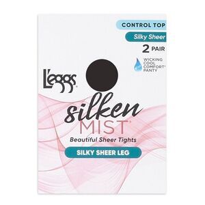 Beautiful sheer tights by L'eggs Silken Mist in a two pair package. Silky sheer leg made with a hint of stretch to provide a great fit.
