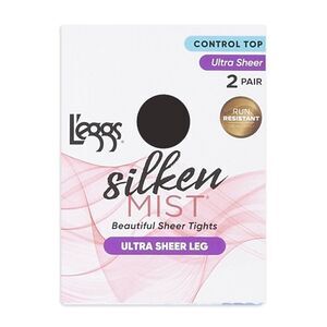 Beautiful sheer tights by L'eggs Silken Mist in a two pair package. Ultra sheer leg provides maximum sheerness, made with run resistant technology.